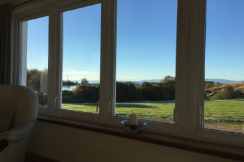 We received a very warm welcome from Marion on our arrival. She was very helpful with information about the b&b and accessing the local hotel where we were meeting family that evening. She even provided us with wine glasses and a corkscrew for our wine and a torch for our walk home later that evening. The room was spotless with fab views over to the loch and the Mull of Kintyre. We loved the fact there was a residents lounge although we didn't use it as our stay was quite short. My husband had some of the cake provided which was lovely. Overall we had a lovely stay and would definitely visit again.