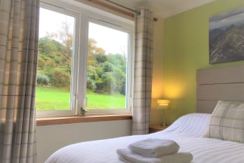 The welcome was very friendly, and Marion explained every thing about the house , breakfast etc. and took us to our room, which had an amazing view over the nearby ponds to the Loch. The beds were very comfortable and the room well appointed with T.V. and ensuite facilities.