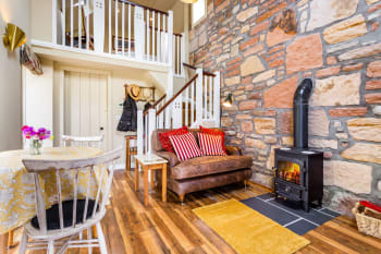 The Garden Suite has its own private entrance and is comprised of a ground floor sitting room with a wood-burning stove with comfortable seating and a flat screen TV with Freeview channels. There is also a small fridge for your own personal use. The bedroom is on the mezzanine level which features a king size bed.Room Facilities: